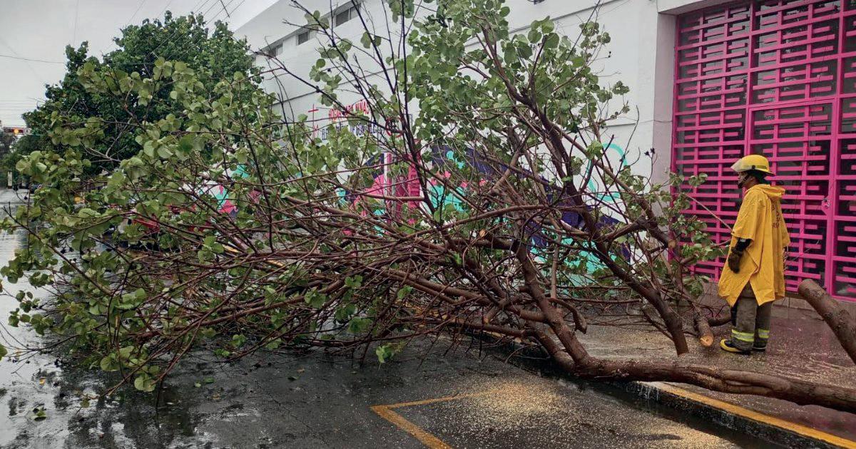 mó que atendieron la caída de seis árboles, una palma incendiada, cinco reportes de cables eléctricos y una lona a punto de desprenderse. Detalló que fue a partir de las 4:50 horas y hasta la 17:00 horas de ayer que se registró la precipitación, con un acumulado de agua de 20.1 milímetros.