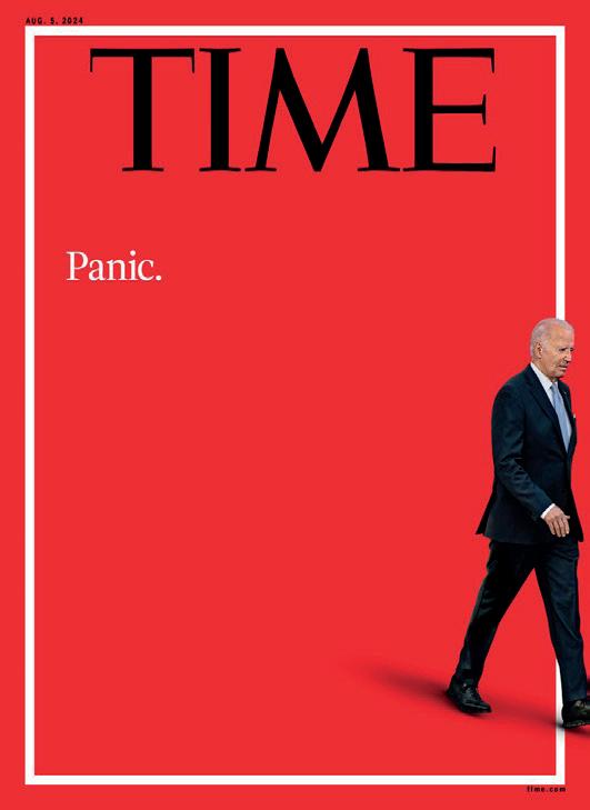 que no seguirá presentándose a la reelección”. Por su parte, el editorial de Wall Street Journal aseveró que Biden debe renunciar tras demostrar en el debate que “ya no está capacitado para gobernar otros cuatro años”. Mientras que Time lanzó su nueva portada en la que se ve al Mandatario caminando casi al borde de la imagen y sólo publica la palabra “Pánico”.