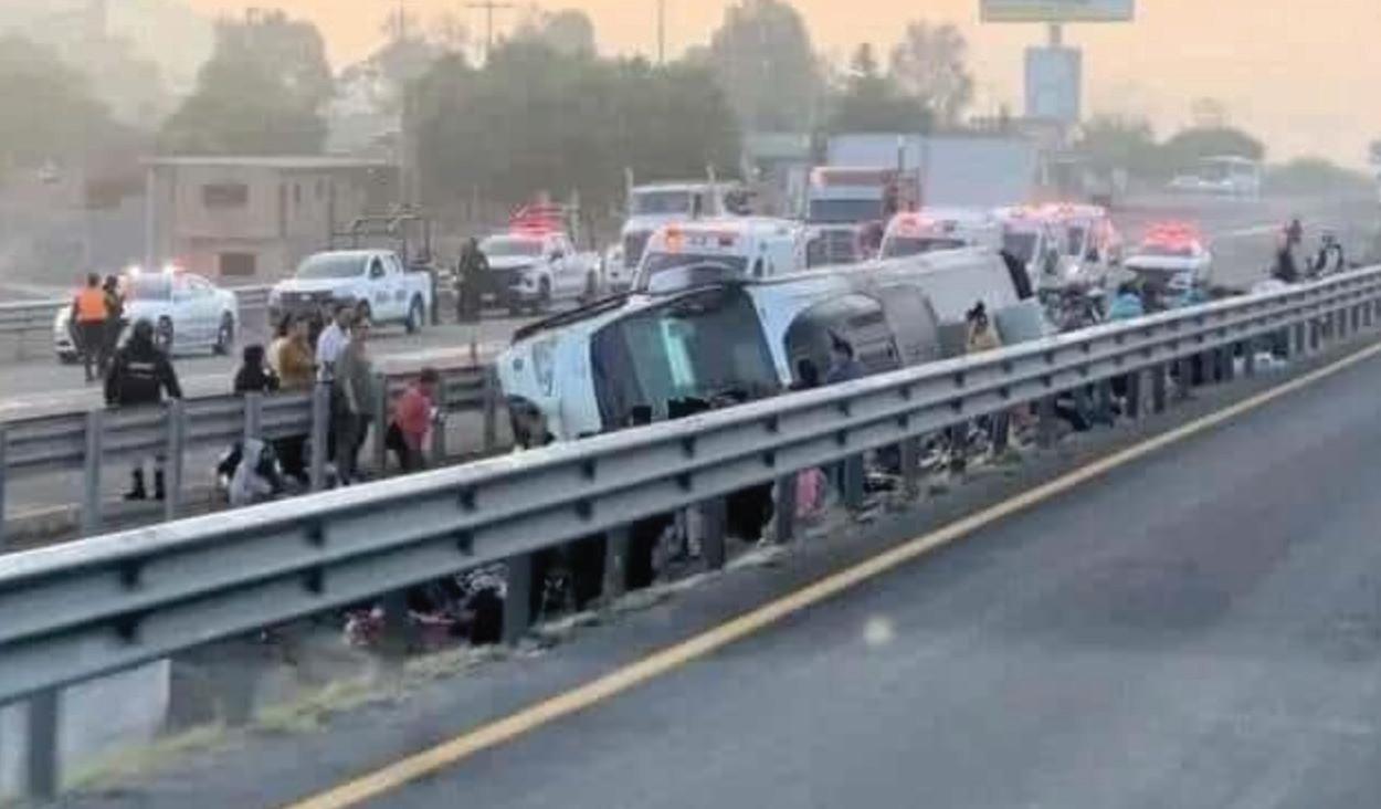 De acuerdo con los reportes, el percance ocurrió alrededor de las 6:00 horas de ayer en la carretera 57, cuando un neumático presuntamente se reventó, causando que el conductor perdiera el control de la unidad y terminara por volcar.