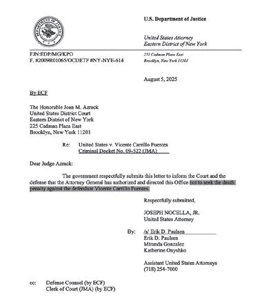 La decisión puede ser un indicio de los acuerdos alcanzados entre abogados de los capos y fiscales estadunidenses.