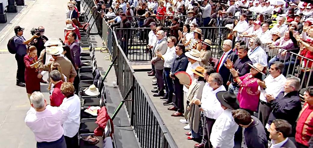 Los políticos que en marzo pasado dieron la espalda a la Presidenta Claudia Sheinbaum en el mitin de respuesta a los aranceles de Trump, ayer ya no salieron en la foto, pues fueron asignados a un área detrás de las vallas de metal.
