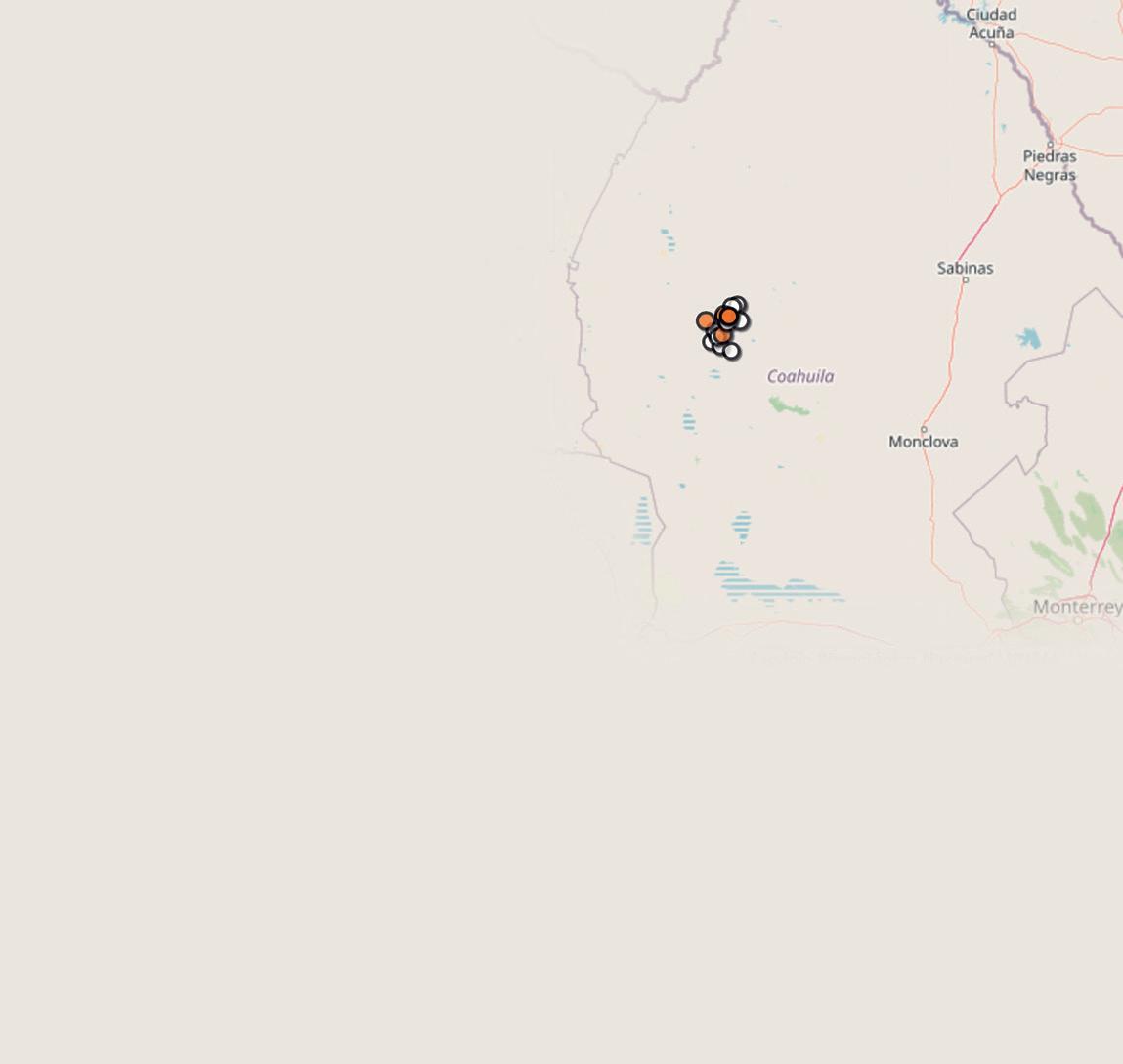 06/05 z 3.9 / 143 km al suroeste de Múzquiz 10:47:58 / Prof. 10 km 06/05 z 3.8 / 137 km al noroeste de San Buenaventura 08:32:14 /