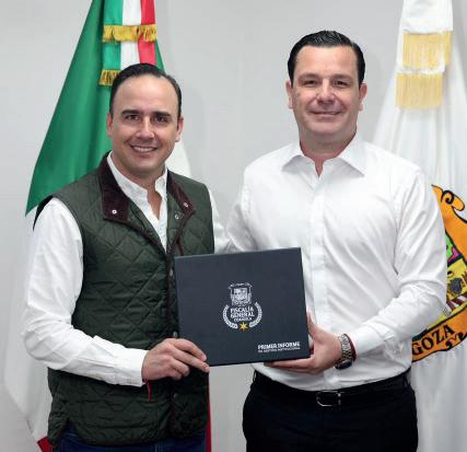 El gobernador Manolo Jiménez Salinas recibió el Primer Informe de Gestión Institucional del fiscal general del Estado, Federico Fernández Montañez, previo a su comparecencia ante las y los diputados que conforman la 63 Legislatura local.