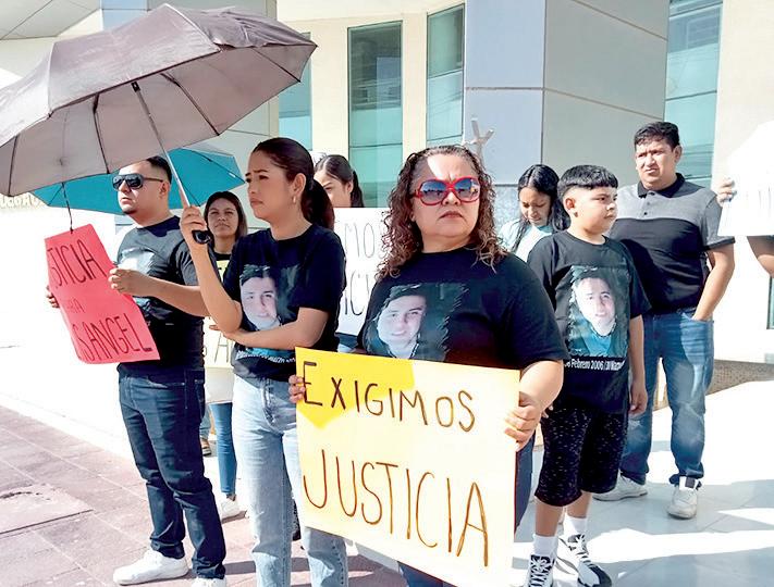 z Familiares de Luis Ángel, joven de 20 años que falleció el 30 de marzo en un accidente de tránsito, se manifestaron en la delegación Laguna 1 de la Fiscalía General del Estado, para exigir justicia, acusando que la muerte de su hijo fue un homicidio intencional y no un accidente en el que, junto con un amigo, fue arrastrado por 50 metros. z Carlos Rangel Gámez, titular de la delegación, informó que se atendió a los familiares.