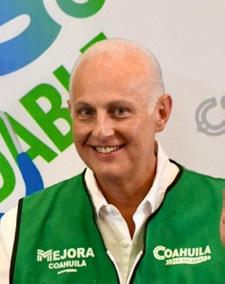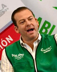 El que ya lleva dos días seguidos con el chaleco verde de Mejora Coahuila es Román Alberto Cepeda, quien todavía cobra como alcalde de To-