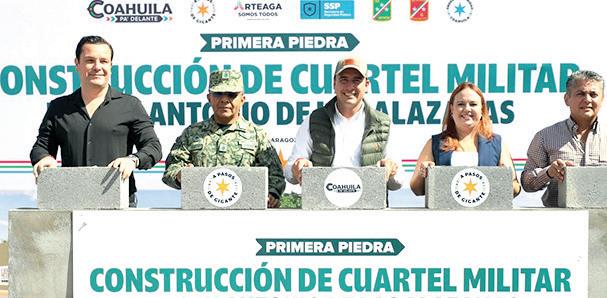 El gobernador Manolo Jiménez Salinas puso en marcha los trabajos de construcción del cuartel militar en San Antonio de las Alazanas, en Arteaga, en el cual se invertirán poco más de 14 millones de pesos y que es parte de la estrategia de reforzamiento del blindaje de la entidad. Reiteró que el seguir fortaleciendo la seguridad y el blindaje en el estado es una prioridad para su Administración, por lo que se sigue invirtiendo en infraestructura y equipamiento en este tema.