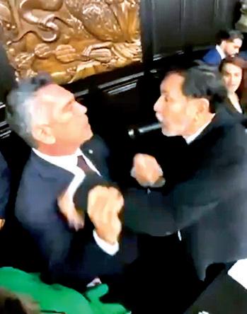 z “¡No me toques!", respondió Noroña. Y fue cuando todo arrancó: ambos forcejearon.