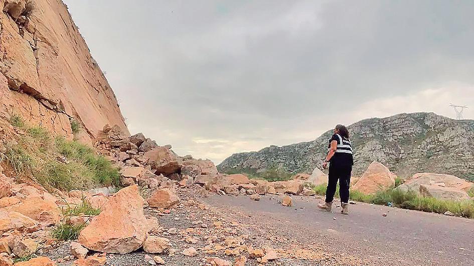 Fue montado un operativo para advertir a automovilistas y a proceder al retiro del material pétreo, analizando además la integridad del cerro para evitar riesgos posteriores. n Redacción