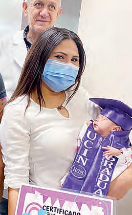 Por su parte, el doctor Ángel Cruz García Rodríguez, director del hospital Amparo Pape de Benavides, destacó que como hospital es importante que la población de la Región Centro se dé cuenta de la atención que dan a los bebés. “Nuestra niña nació un 30 de marzo, nació pesando 850 gramos, desde el momento que nace con este peso obvio es prematurez extrema, tiene un gran problema de inmadurez pulmonar, afortunadamente a los cuidados del equipo de salud que incluye enfermería, médicos, pediatras, residentes, internos se logró que en estos 111 días de ardua labor, logramos consolidar hoy 19 de julio la salida de nuestra graduada en com- pañía de sus padres”, dijo Ángel Cruz García.