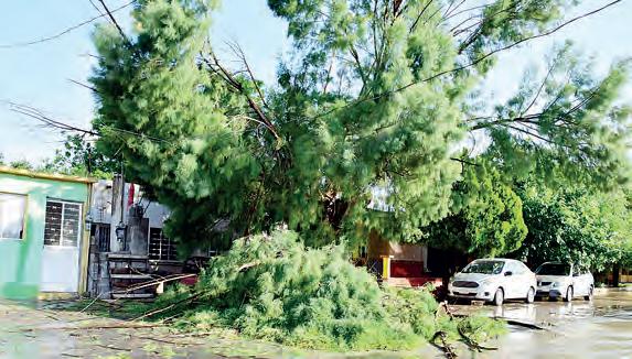 Civil, informó que la tormenta dañó estructuras de techos y una barda que se desplomó en la calle Porfirio Díaz, entre La Sierrita y Occidental. Asimismo, en el Parque Ferrocarrilero, los fuertes vientos derribaron varios árboles, lo que provocó la caída de aproximadamente 30 metros de barda del lado poniente. En otros sectores como la colonia Guadalupe Borja, Zona Centro y Héroe de Nacozari, se contabilizaron entre 15 y 20 árboles caídos, muchos de los cuales también afectaron el tendido eléctrico, generando riesgos en la vía pública.