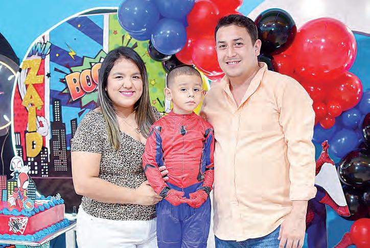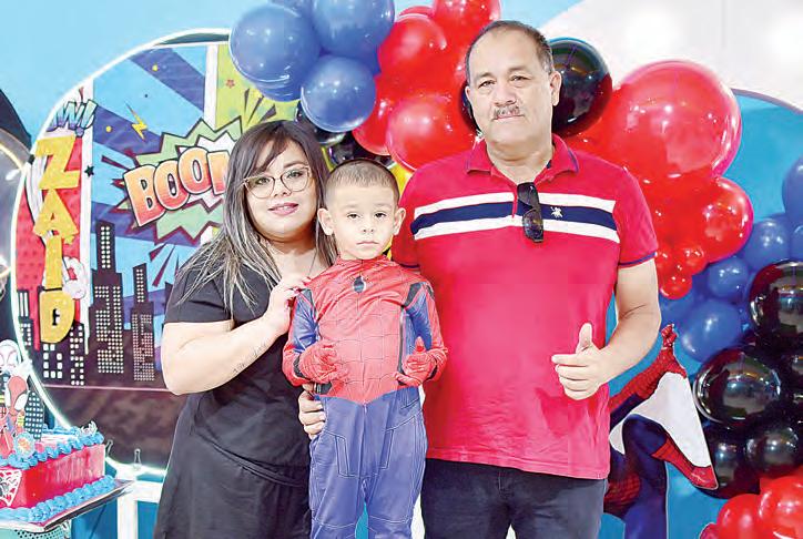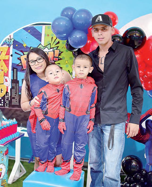 cumpleaños número 5 con una increíble fiesta de su personaje favorito de Marvel, Spiderman. Muy contento y en compa- ñía de sus papás, Ángel y Jatziri, además de su hermano Aizar Mauricio, el festejado recibió a familiares y amigos quienes lo llenaron de felici-