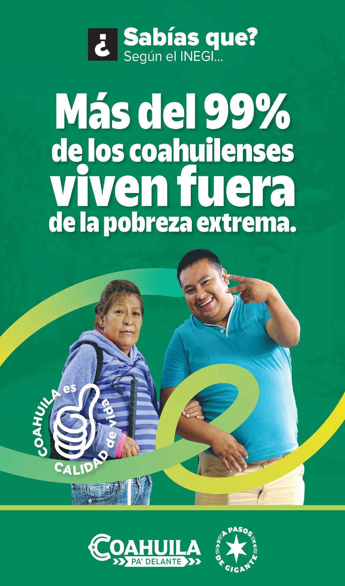 Debe usted saber que cuenta con más de 100 programas y acciones activos, pensados bajo el sentir y las necesidades de los coahuilenses, los cuales llegan a las colonias, barrios y ejidos de los 38 municipios del estado.