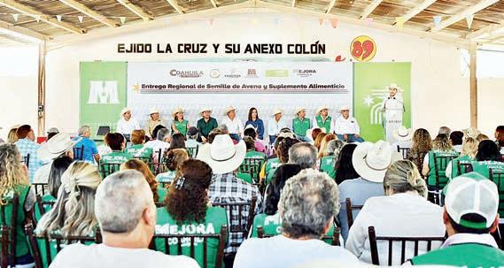 El secretario de Desarrollo Rural, Jesús María “Chuma” Montemayor, llegó ayer al ejido La Cruz para entregar apoyos al sector agrícola. Sergio Sisbeles acompañado por los alcaldes Sara Irma Pérez Cantú, de Frontera y Carlos Villarreal junto con los comisariados de distintos ejidos, encabezaron la entrega de 28.5 toneladas de semilla de avena y 35 toneladas de suplemento alimenticio. Este apoyo representa un impulso directo a las familias que trabajan la tierra y sostienen la producción en la región. Lo que entregaron ayer forma parte del compromiso del Gobernador Manolo Jiménez y mediante una inversión tripartita superior a 900 mil pesos, respalda proyectos productivos en los municipios de Monclova y Frontera.