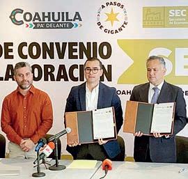 La Secretaría de Economía de Coahuila firmó un convenio con el Instituto Mexicano de Propiedad Intelectual, para entre otros beneficios, otorgar un 90 por ciento de descuento a emprendedores, grupos poblacionales prioritarios y pequeños negocios, en el registro de marcas, avisos y nombres comerciales.