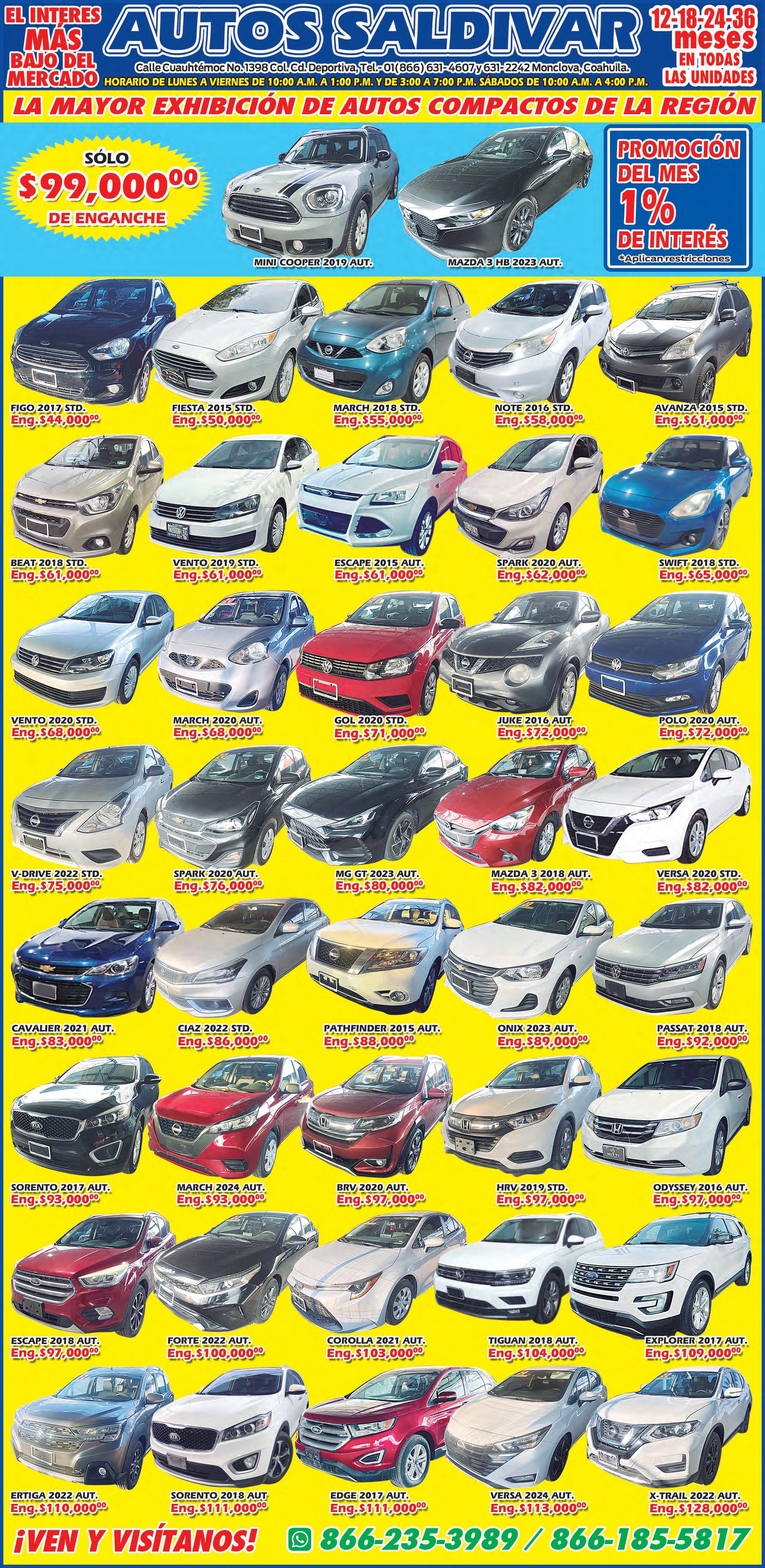 Compro carros, camionetas, combis para chatarra de $5,000$10,000, 866-650-59-87. (59449 : 27-Sep : 12-Oct)