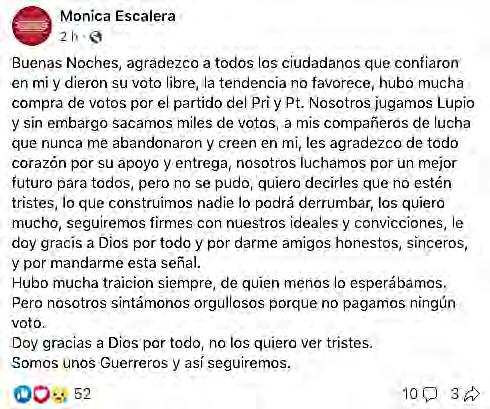 El siguiente en aceptar que no le favoreció el voto fue el candidato del PT, expresando “las tendencias que arrojan los resultados electorales preliminares no son favorables para nuestra candidatura” y finalmente Lenin Pérez hizo lo propio mediante un video en redes sociales.