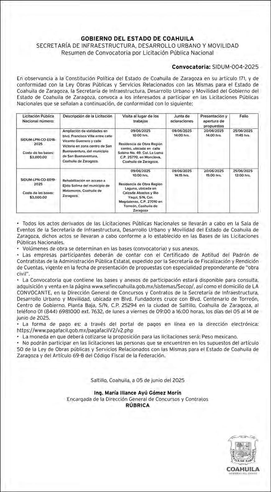 z Enero de 2025: Sismo de magnitud 3.7 a 53 km al Suroeste de Saltillo. z 22 de marzo de 2025: Movimiento de magnitud 3.8 a 23 km al Este de Ramos Arizpe, más al Sur del estado. z 11 de mayo de 2025: Sismo de magnitud 4.5 con epicentro en Montemorelos, Nuevo León, el cual fue percibido en Saltillo, Ramos Arizpe y Arteaga, aunque no alcanzó a sentirse directamente en Monclova.