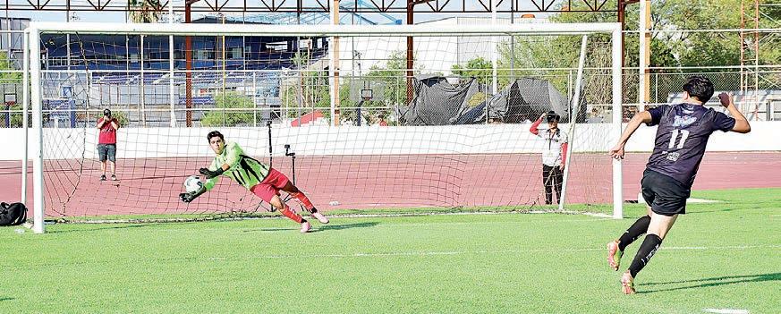 to orden durante los 90 minutos que registraron un empate sin anotaciones, para obligar a los tiros de penalti. Desde los once pasos, la escuadra de Frontera fue la primera en cobrar el penalti, con- cretando Ángel Chavarría el gol que les daba la ventaja, mientras que por la escuadra de SSN Monclova, Héctor Castillo em-