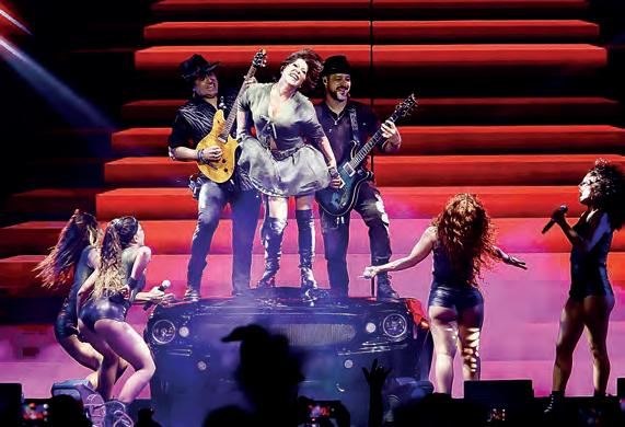interpretó “Rosas Rojas” mientras dirigía la mirada hacia arriba y su público iluminaba el recuento como si fuera un cielo estrellado. Como parte de su escenografía había un automóvil negro, donde sus músicos estuvieron divididos en dos niveles frente a pantallas LED gigantes. En “Cuidado con el Corazón” se bajó para acercarse a su papá, darle un beso en la boca y agradecerle su presencia. En primera fila también estuvo Alexis Guzmán, imitador y transformista desde hace 36 años, reconocido por la propia artista como “La Voz Gemela Oficial”, quien viajó desde Ta-