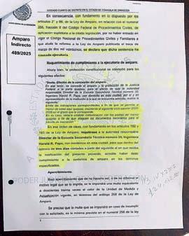 El jueves pasado el Juez Cuarto de Distrito ordenó al director “que reinscriba al adolescente en el grado escolar que corresponda y que acredite fehacientemente que ya cumplió con la sentencia de amparo.