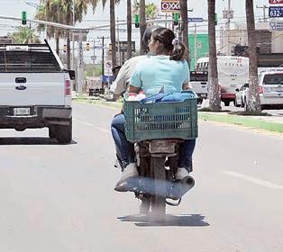 nes, la moto es abordada por quien la conduce y un pasajero; y que el conductor le da el casco al acompañante, quedando desprotegido él mismo -o viceversa. El entrevistado lamentó que otro de los riesgos del uso de las motocicletas radica en el hecho de que también son usadas al mismo tiempo por dos adultos y dos niños, quedando sin protección hasta tres personas.