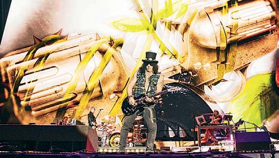 z Slash, con su eterno sombrero de copa y su inseparable guitarra, ofreció solos de hasta diez minutos que arrancaron ovaciones ensordecedoras. Ante 65 mil asistentes