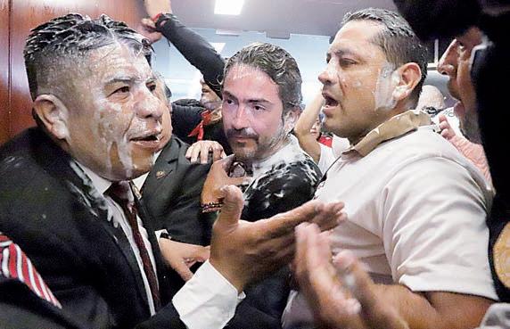 A su ingreso al Salón de Plenos, arropado por el coordinador de Morena López Hernández, Yunes Linares escuchó los gritos de “¡traidor!” desde las filas panistas.