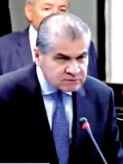 Expone Miguel Riquelme rechazo z En su posicionamiento, el senador por Coahuila del PRI, Miguel Ángel Riquelme Solís, detalló los motivos en contra y sostuvo que: “Simulan el apoyo del pueblo sin consultar al pueblo, por eso tienen sus prisas legislativas y sus compras de votos transfuguistas”. z Riquelme destacó que: “No es cierto que esta iniciativa erradique los problemas de corrupción, nepotismo, privilegios y dilaciones indebidas”.