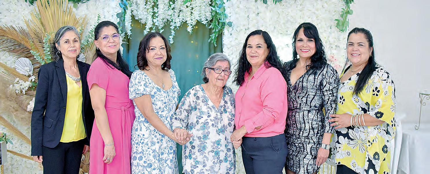 z La cumpleañera junto a sus hijas Isabel, Luisa, Gloria Patricia, Paula Esther, Alejandra y Gabriela.
