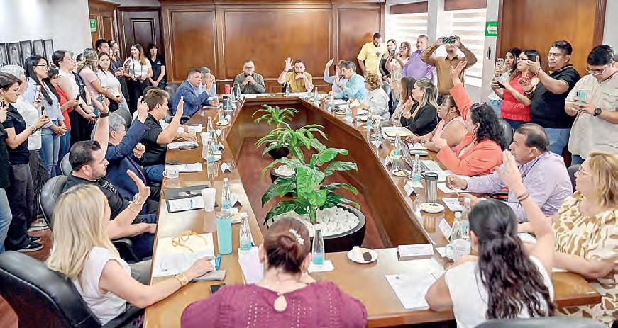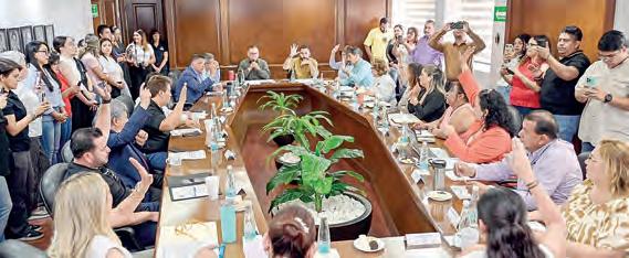 dree González; el secretario, José David Juaristi Santos; el tesorero, René Robles, así como el contador público Francisco Juaristi Santos, consejero de la Cámara y presidente de Grupo Zócalo, entre otros empresarios. Durante la reunión, Díaz González destacó tres pilares de su Gobierno: la seguridad, el desarrollo social y el transporte público. Sobre la seguridad, el Alcalde reconoció que es una tarea de todos los días en la que trabajan coordinados los tres ór-