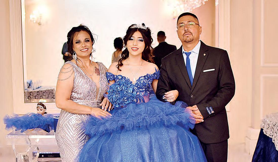 Mena Guerra, quien acompañada de familiares y amigos celebró en grande la dicha de cumplir XV años. Primeramente se llevó a cabo una misa en la Parroquia San José Obrero en donde la debutante acompañada de sus padres, además de sus herma-