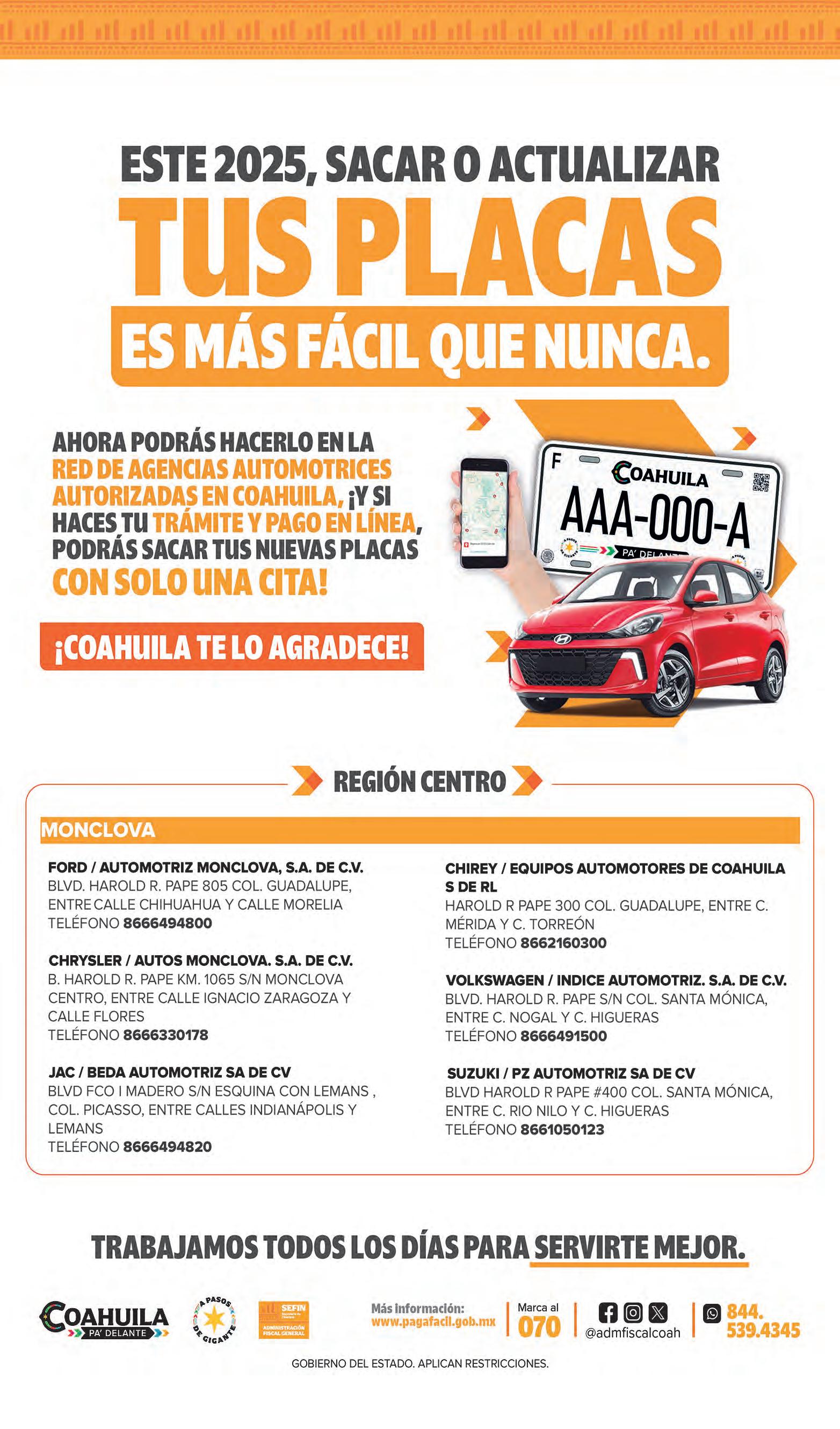 Iniciará aquí z Derramadero z Saltillo z Ramos Arizpe z Santa Catarina z Monterrey z Escobedo z Nuevo Laredo