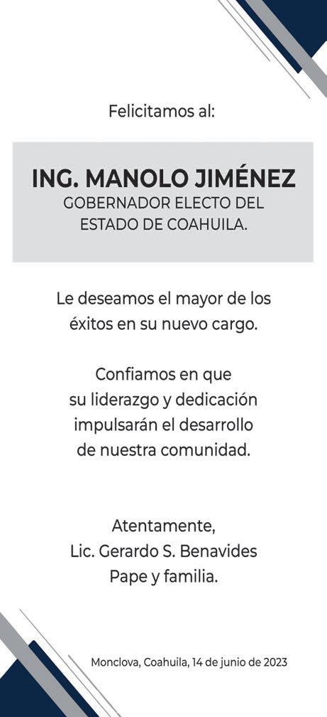 Miércoles 14 de junio de 2023 | Año XXIV | Número 9015 | 6 secciones | www.zocalo.com.mx 10 PESOS @PeriodicoZocalo Periodico Zócalo zocalomonclova PEGAN PLATAFORMAS