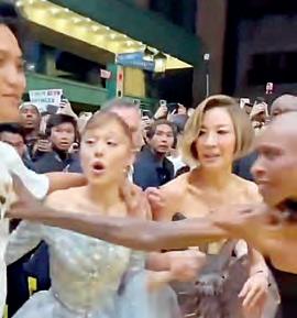 La actriz y cantante, quien interpreta a Glinda en la cinta musical, saludaba al público junto a Michelle Yeoh, Cynthia Erivo y Jeff Goldblum cuando un joven con camiseta blanca y cabello negro con mechas azules irrumpió en la alfombra y corrió directamente hacia ella.