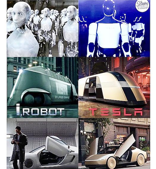 rar mis diseños, por favor?”, escribió Proyas en su perfil de la red social X (antes Twitter), junto a una comparación de fotos de dichos lanzamientos con escenas de su películas. En las imágenes se ven diseños altamente similares de los robots humanoides de Musk, así como de sus vehículos Robovan y Cybercab, en contraste con los que se ven en la cinta, protagonizada por Will Smith. Durante el evento “We, Robot” (una referencia al filme), celebrado hace unos días en Warner Bros. Studios, Tesla, la compañía de Musk, presentó sus últimas creaciones tecnológicas al mundo.
