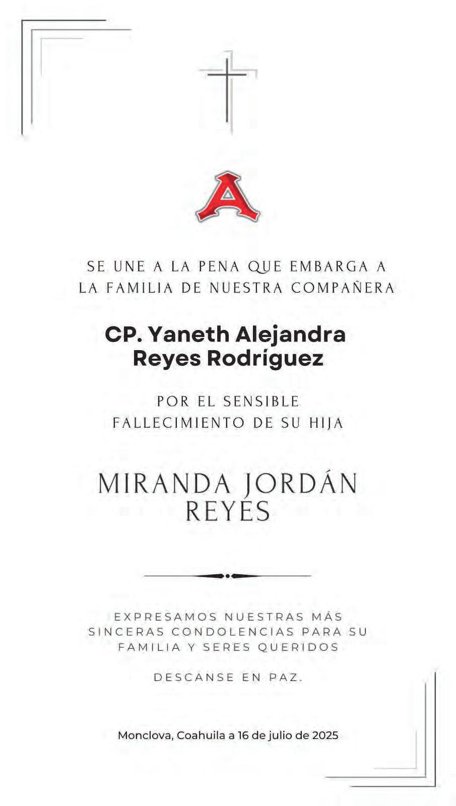 alcoholizado al momento del accidente porque no consiguieron asegurarlo. Fue este domingo 13 de julio que ocurrió la tragedia, cuando cinco empleados de DeFabrieck, que presta sus servicios a Stellantis Motores, se trasladaban a la empresa a bordo de una Toyota Avanza, cuando en el kilómetro 342+500 de la carretera Saltillo-Zacatecas fueron impactados de frente por una Dodge RAM 2500, pereciendo cuatro trabajadores, entre ellos Roberto y Yazmín. (Rosalío González / SALTILLO)