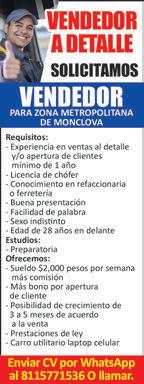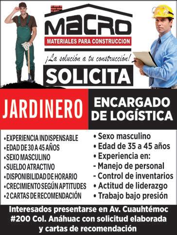 Solicito Ayudante General, Hombre o Mujer, Edad de 25 a 40 años, no se requiere experiencía. Informes 866-632-18-16. (58277 : 07-Jun : 05-Aug)