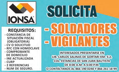 Mecánico Diésel y Pailero, experiencía necesaria, que haya laborado en empresas o talleres dedicados a dar servicio a reparacioón de unidades (cajas secas, Plataformas, Dollys, Etc.) Comunicarse al teléfono 866 234-53-42. (58304 : 17-Jun : 21-Jun)