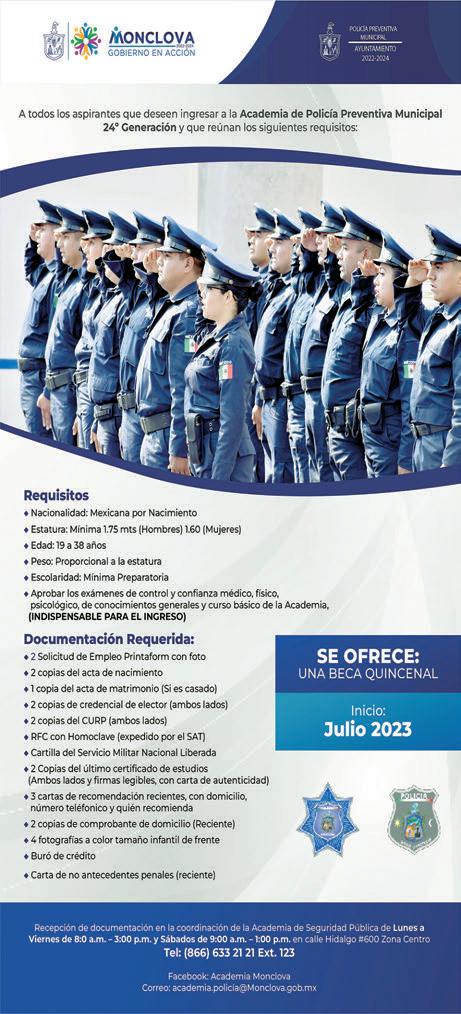 Sábado 17 de junio de 2023 | Año XXIV | Número 9018 | 6 secciones | www.zocalo.com.mx 10 PESOS @PeriodicoZocalo Periodico Zócalo zocalomonclova El clima en la región Hoy MÁX 41° MIN 27° Mañana MÁX 43° MIN 29°