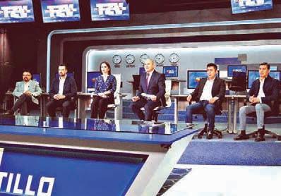 datos, Guadiana y Mejía atacándose, denostándose porque las propuestas se les olvidaron en la oficina, y los otros dos candidatos, Manolo y Lenin, concentrados”.