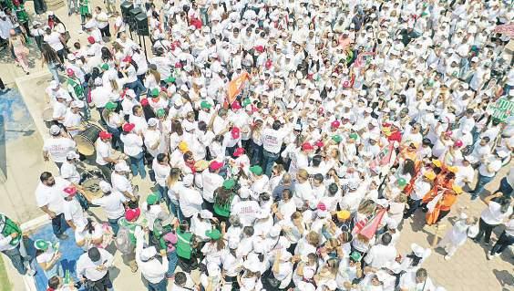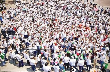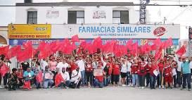 En el mismo lugar, PAN y PRI midieron fuerzas, reunieron a sus simpatizantes para el volanteo y pega de calcas.
