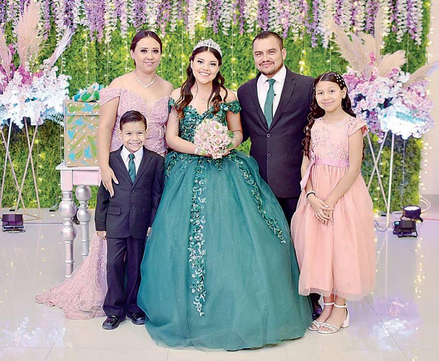 sus papás César Alfonso Pinales y Sandra Edith Menchaca, además de sus hermanos Gael y Ximena, quienes en conjunto prepararon con cariño cada detalle de la fiesta. Seres queridos de la debutante se dieron cita a un salón de la ciudad, lugar en donde le brindaron sus felcitaciones y mejores deseos, además compartieron junto a ella de cada una de las sorpresas que se prepararon por sus XV años.