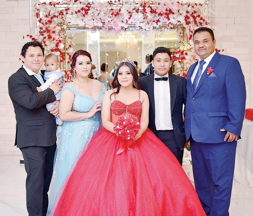 z Alejandra, Arely, Edith, Selena e Irma, damas de honor.