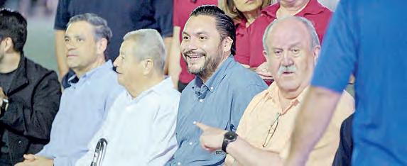En la fila de enfrente, entre los coordinadores y futura candidata a diputada local, Alejandra Salazar, que denunció a Guadiana por actos anticipados de campaña.