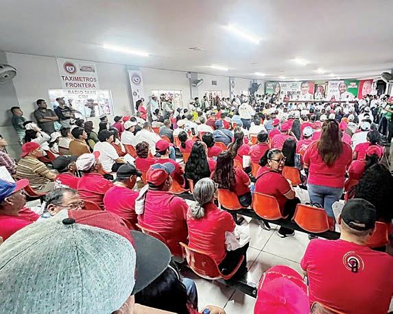 La reunión fue en las instalaciones del sindicato, donde se dieron cita cientos de trabajadores con el candidato de la Alianza Ciudadana por la Seguridad, quien estuvo en compañía del candidato al Senado, Miguel Ángel Riquelme Solís, saludando a cada uno de los asistentes para después brindarles un mensaje presentando sus propuestas.