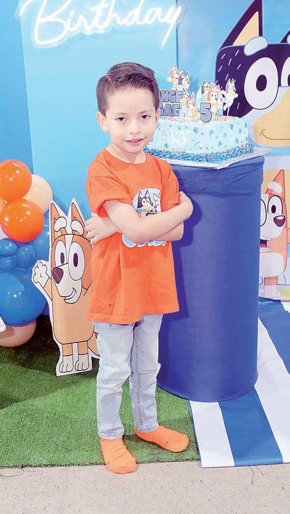 Ángel Gael Morales Carrizales, cumplió cinco años y fue con- sentido por sus padres, Ángel Guillermo Castillo Morales y Thalía Judith Carrizales, con una fiesta de su personaje favorito Bluey. Familiares y amistades de Ángel no dejaron de felicitarlo, le brindaron los mejores deseos y le hicieron entrega de regalos que le encantaron. El cumpleañero la pasó súper consentido, pues sus abuelitos Ángel Carrizales Iracheta y María Leticia Garnica Saldaña, lo acompañaron y cuidaron que nada le faltara. Ángel Gael, disfrutó al máximo los juegos del lugar, posteriormente rompieron la piñata y disfrutaron de una deliciosa merienda que se preparó para este día. Los anfitriones agradecieron a los presentes por su compañía.