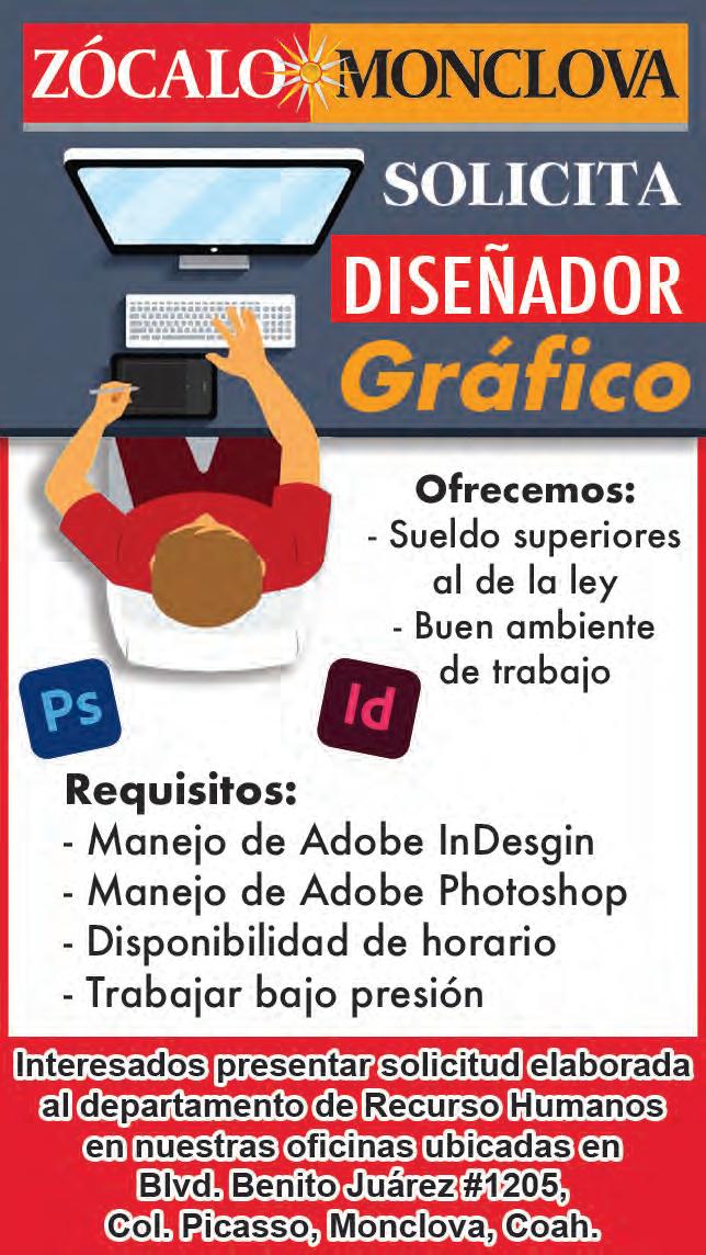 SOLICITA Personal de Limpieza. Actividades a realizar: Lavar ropa, Planchar, Cocinar, Barrer, Trapear, Limpieza de muebles, Lavar baños, LImpieza general adentro/afuera. Requisitos:*Experiencia limpieza mínimo 1 año,*2 Cartas de recomendación. Sueldo $1,750 más prestaciones de ley, lunes a sábado 8:00a.m a 5:00p.m 1 hora de comida. Comunicarse 811578-56-36/866632-18-16 rh.publimarx@outlook. com Niguel Ramos Arizpe #243, Zona Centro, Monclova. (58933 : 10-Jul : 01-Aug)