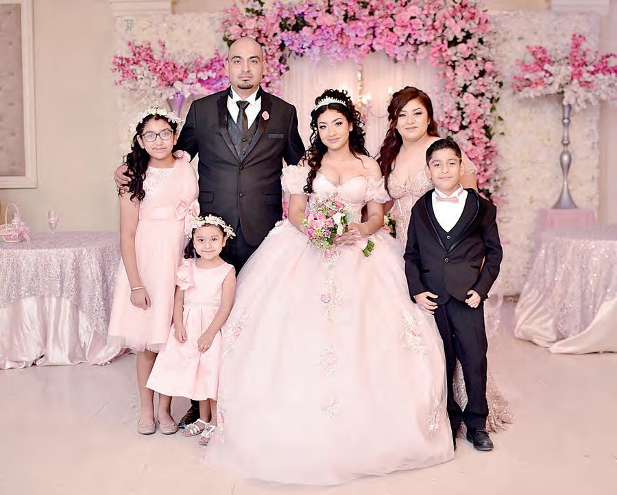 Sus padres, Néstor Javier Saldaña y Berenice del Carmen Ramos, fueron quienes la presentaron en sociedad durante una inolvidable fiesta que se llevó a cabo después de la ceremonia religiosa. Familiares y amistades de la debutante le desearon lo mejor en este día y le entregaron finos obsequios. Durante la noche, Evelyn bailó su primer vals con su papá y chambelanes.