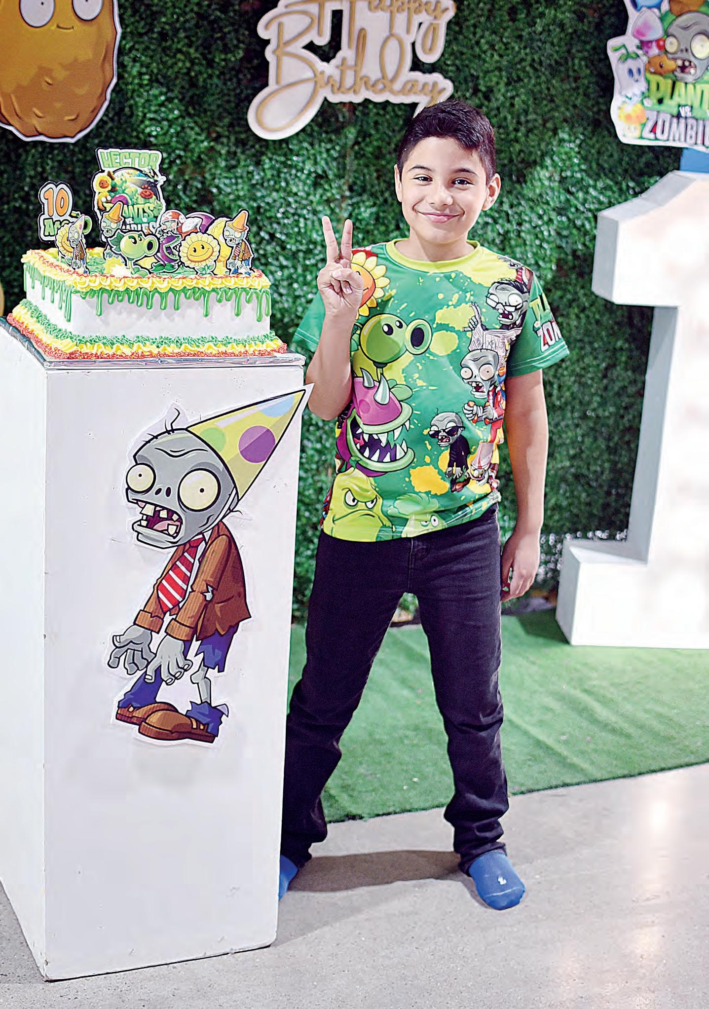 Con motivo del cumpleaños número 10 de Héctor Luis Suárez Santos, sus papás Luis Oliver Suárez y Ariana Santos, decidieron consentirlo con una divertida fiesta de Plantas Vs. Zombies. Un día lleno de alegría y en-