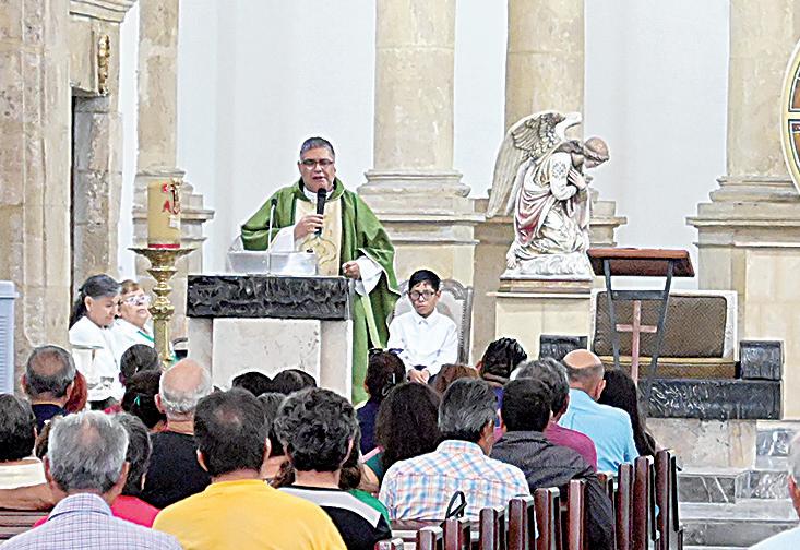 z En la misa dominical de las 11:00 de la mañana, el padre Eduardo Neri pidió reciclar útiles escolares ante las dificultades que enfrentan las familias por la crisis de AHMSA.